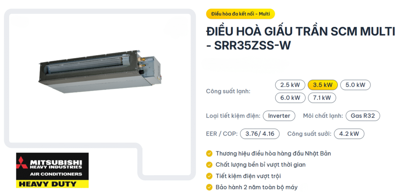 Dàn lạnh giấu trần Multi Mitsubishi Heavy 1.5HP SRR35ZSS-W Inverter 2 chiều 1 pha