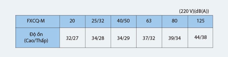 | Độ ồn (5 cấp) | 220V | dB(A) | 44/38 |