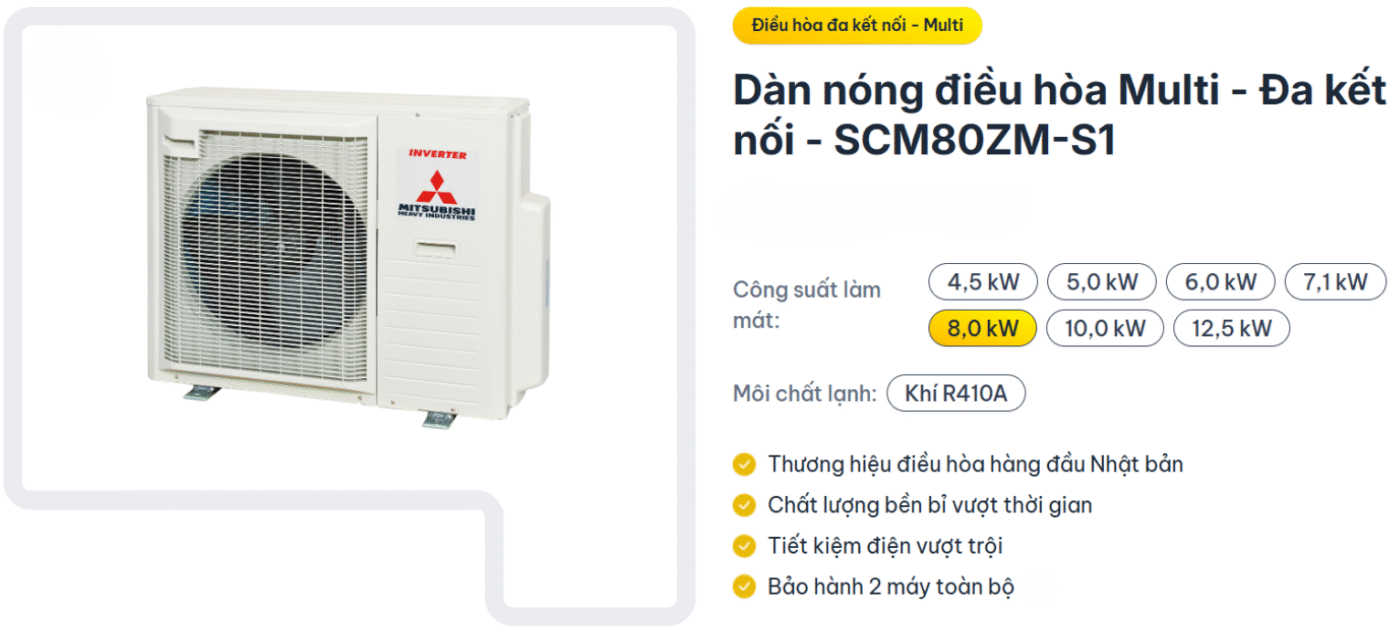 Dòng sản phẩm đa kết nối SCM Multi,hệ thống hoạt động độc lập – Dàn nóng Multi máy lạnh Mitsubishi Heavy 3HP SCM80ZM-S1 Inverter 2 chiều 1 pha
