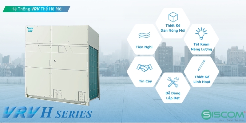 Điều hòa trung tâm VRV H thế hệ thứ VI thuộc hệ thống máy lạnh VRV Daikin, sản phẩm giới thiệu tháng 9/2023, được bán thương mại vào năm 2024, với dãy công suất dàn nóng rộng từ 8HP lên đến 60HP, có nhiều đặc điểm nổi bật sau: