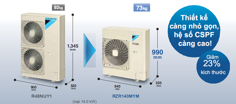 So với các dòng không sử dụng công nghệ inverter trước đây, các dàn nóng này nhỏ gọn hơn nhiều.