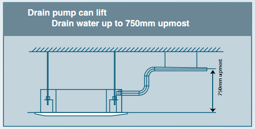 Tích hợp bơm thoát nước có thể nâng nước ngưng tụ lên đến 750mm ở trên cao.