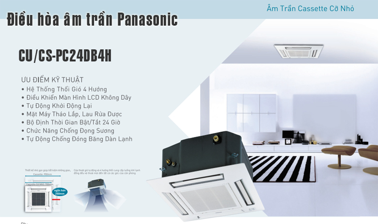 Điều hòa âm trần Panasonic 24000BTU CU/CS-PC24DB4H loại mini cassette 1 chiều lạnh sử dụng gas R22 nhập khẩu chính hãng Malaysia lựa chọn lý tưởng cho công trình của Bạn.
