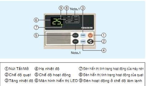 Bộ điều khiển từ xa kỹ thuật số đi kèm với dàn lạnh. Việc cài nhiệt độ được thực hiện bằng các nút điều khiển. Nhiệt độ cài đặt sẽ được hiển thị rõ trên màn hình tinh thể lỏng LED.
