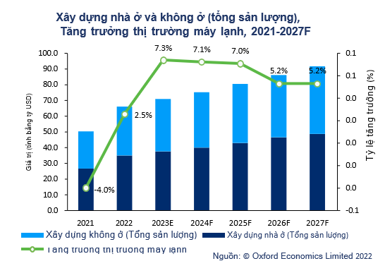 trợ sự tăng trưởng trong suốt thời kỳ dự báo . Tuy nhiên, cần phải chú ý đến các yếu tố bên ngoài có thể ảnh hưởng đến sự tăng trưởng, bao gồm tình hình địa chính trị toàn cầu, chi phí nguyên liệu và xu hướng suy thoái kinh tế. Sự tăng trưởng thị trường AC tại Việt Nam cũng sẽ được hỗ trợ bởi cam kết tái khẳng định của chính phủ Việt Nam với COP27 để đảm bảo khí thải nhà kính được giảm qua công nghệ tốt hơn. Chính sách của chính phủ đối với việc sử dụng các hóa chất ảnh hưởng đến tầng ôzôn sẽ khuyến khích các công ty sử dụng chất làm lạnh hiệu quả cao.