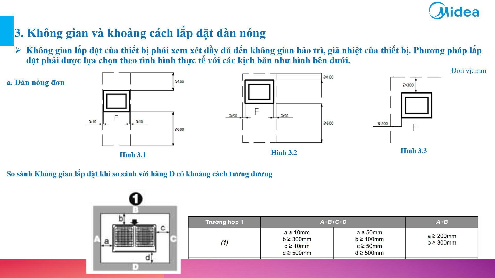 2.1.3.  Không gian và khoảng cách lắp đặt dàn nóng