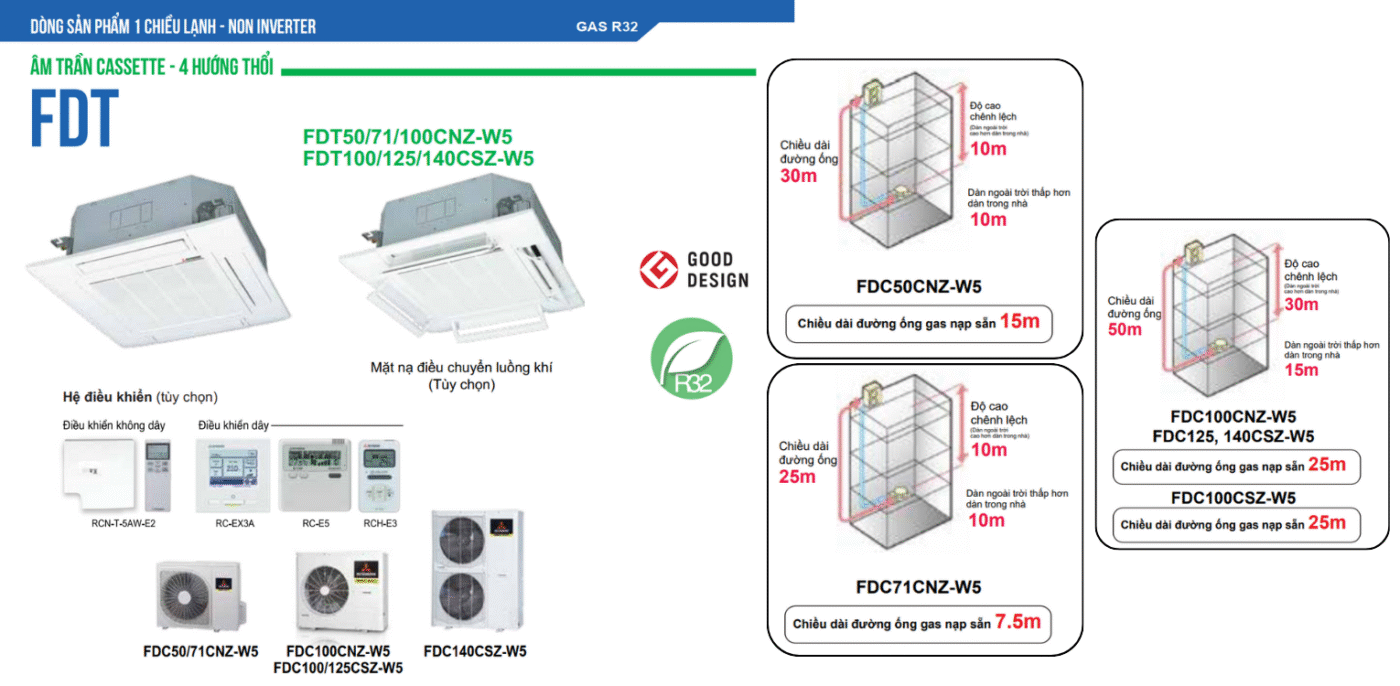 Thông số kỹ thuật dòng FDT non-inverter 2025 của Mitsubishi Heavy Industries