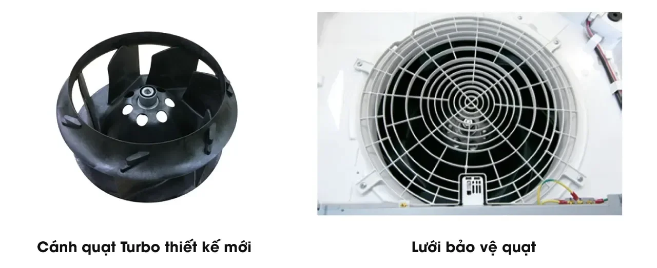 Thiết kế mới của cánh quạt và lưới bảo vệ được cải tiến theo nguyên lý khí động học, giúp giảm dao động áp suất, từ đó hạ độ ồn đáng kể mà vẫn duy trì lưu lượng gió mạnh mẽ. Kết quả là máy vận hành êm ái hơn, mang đến không gian yên tĩnh, dễ chịu cho người dùng.