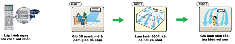 Chế độ đảo gió tự động: Tự động chọn góc thổi chếch để tối đa việc làm lạnh.