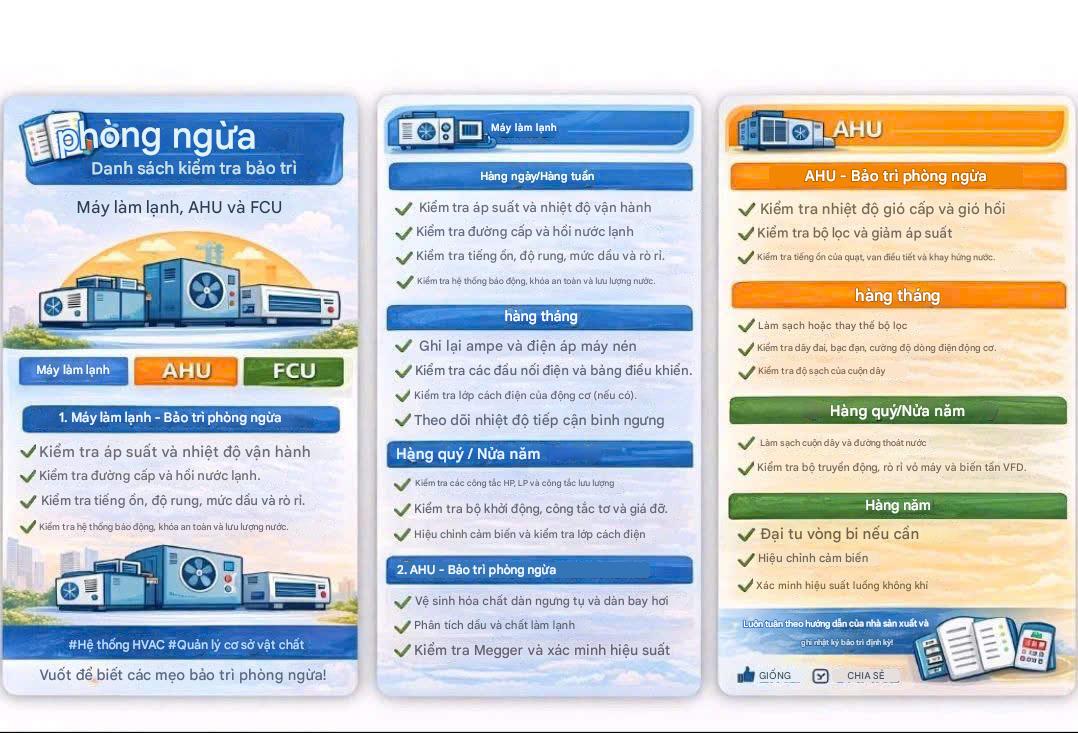Các bước bảo trì hệ thống điều hòa trung tâm :