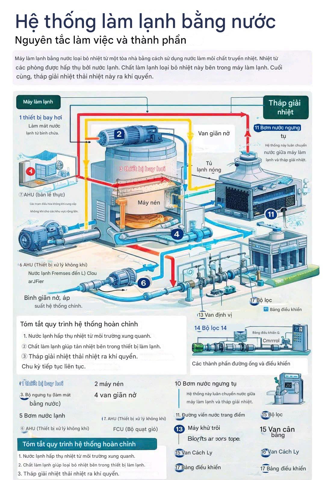 Hệ thống tháp giải nhiệt (cooling tower system) là một phần thiết yếu của chiller