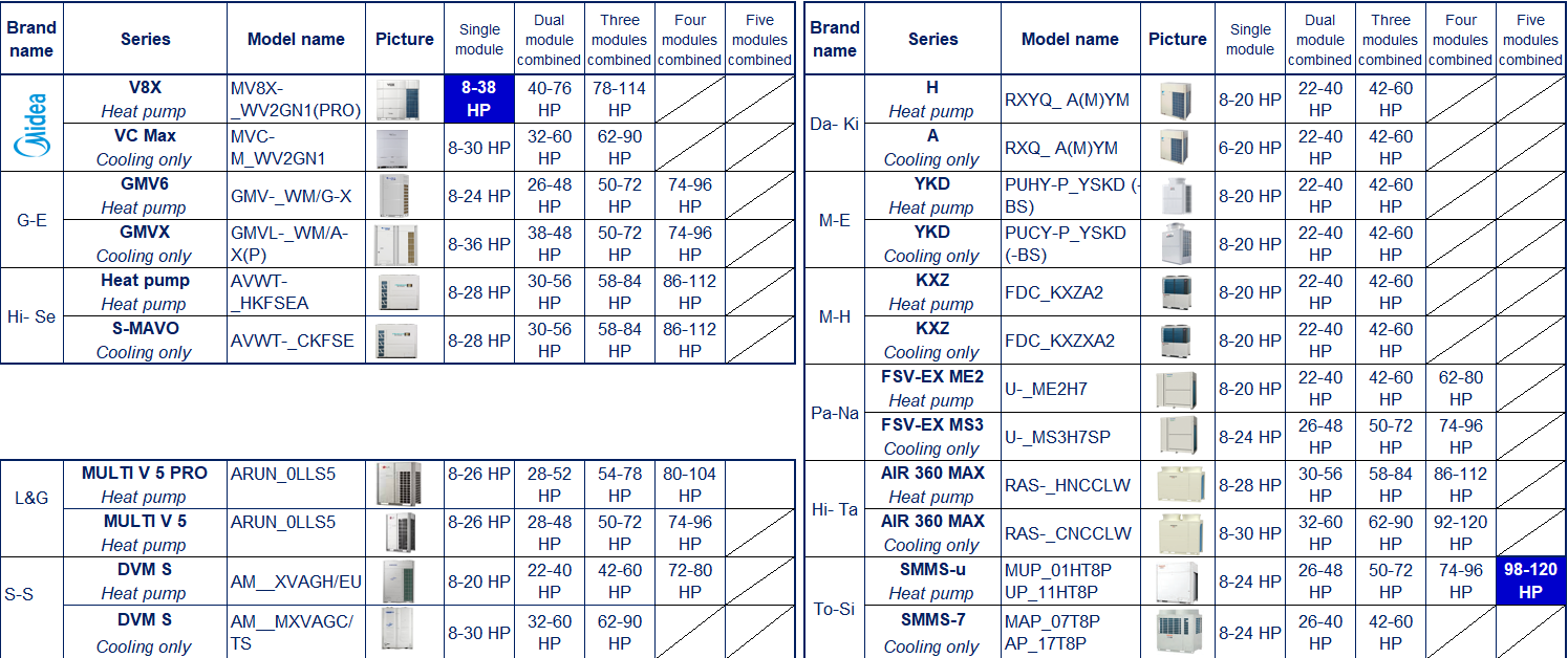 BẢNG SO SÁNH , ĐÁNH GIÁ GIỮA VRF-MIDEA VÀ CÁC HÃNG VRF KHÁC