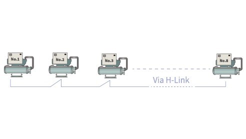 Kết nối lên đến 8 máy làm lạnh Hitachi với nhau bằng cách sử dụng dây H-LINK.